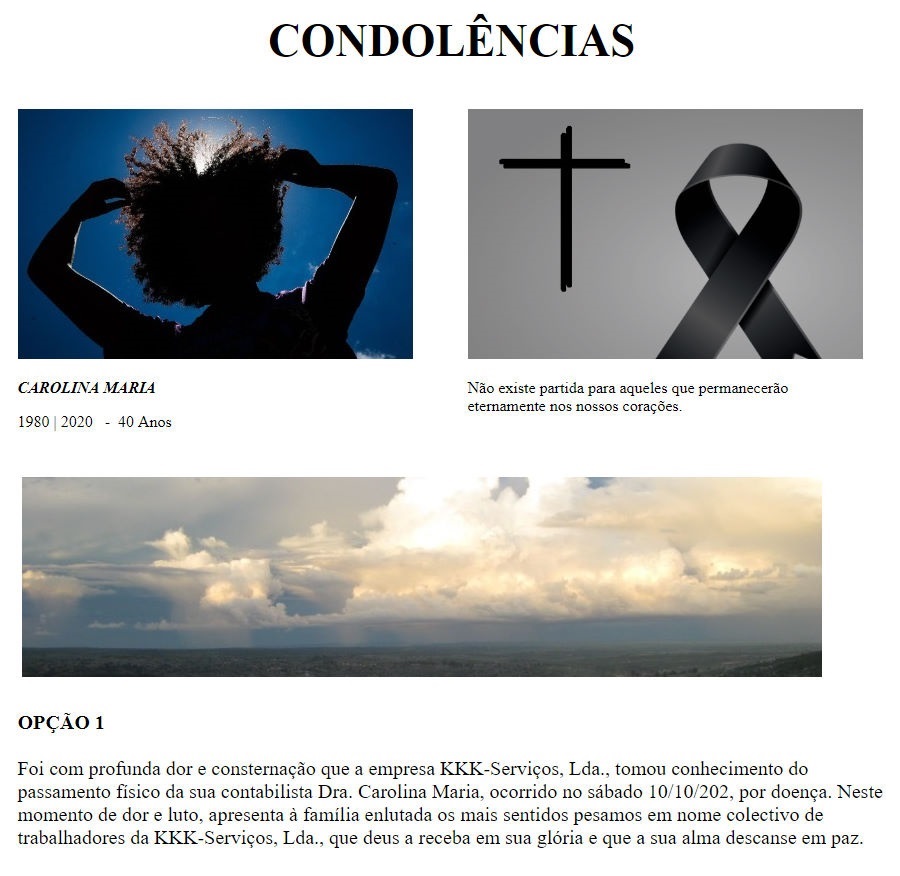 Este serviço permite, através de uma newsletter, que transmita as suas condolências a quem desejar.